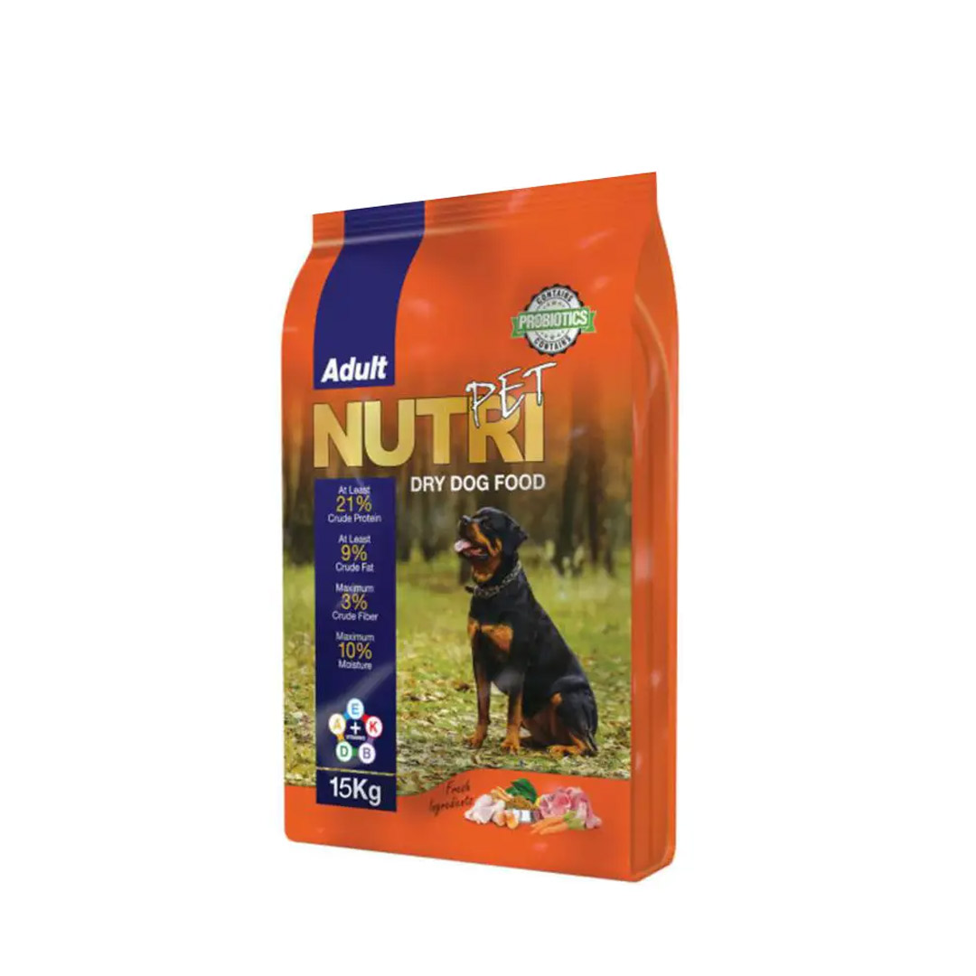 نوتری پت ۱۵ کیلویی حاوی ۲۱ %پروتئین مخصوص سگ های بالغ با فعالیت متوسط تامین کننده نیازهای پایه ای رشد و اندام سازی بدن سگ